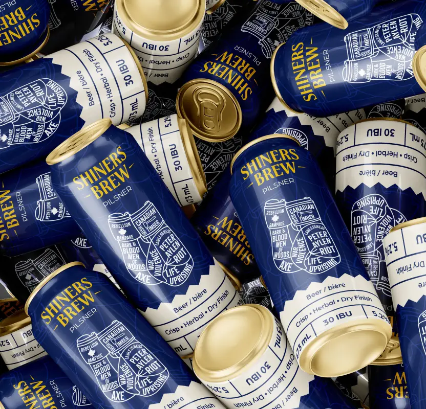 The Shiners Brew reflects the historical tension between French Canadians and Irish immigrants, illustrated with boxing gloves to symbolize resilience.